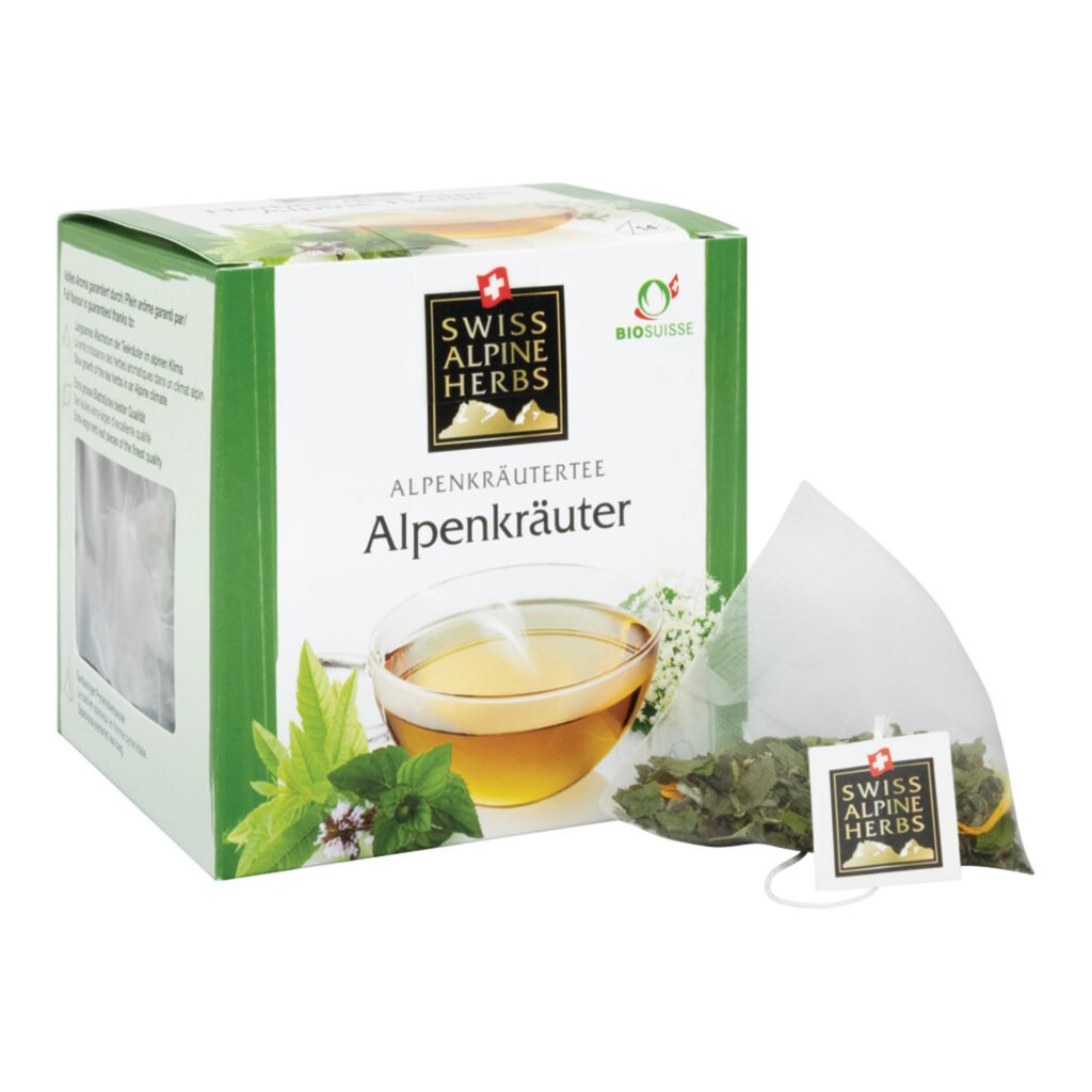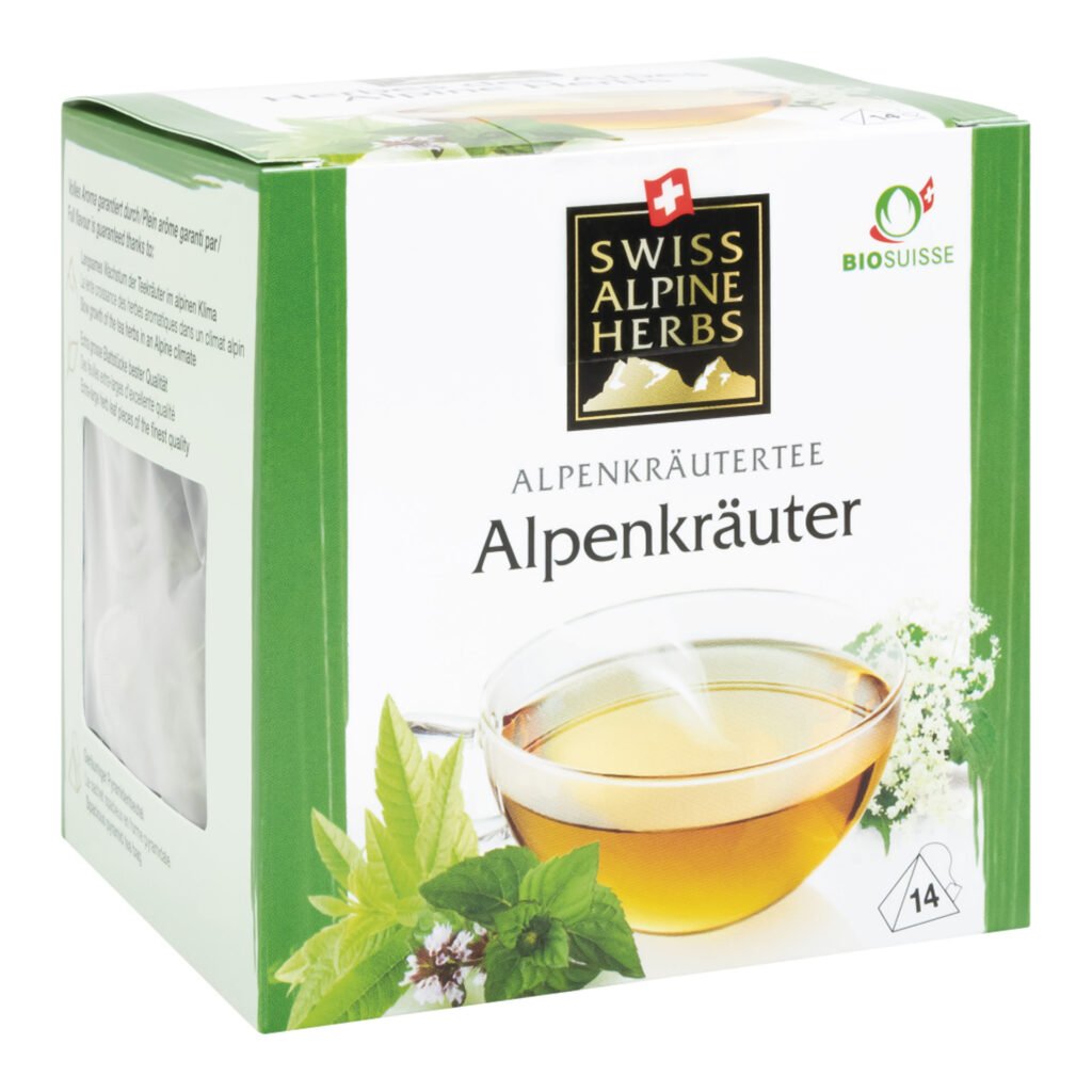 Ein klassischer, leicht minziger Kräutertee von Swiss Alpine Herbs aus wunderbar aromatischen Bio Alpenkräutern, wohltuend und wärmend. Wunderbare Tee-Kreation aus verschiedenen Minzen, Verveine, Zitronenmelisse und Blüten, exquisit und harmonisch ausgewogen mit leichtem Minzgeschmack. Ein wohltuender Tee für jeden Tag und Teegenuss pur!