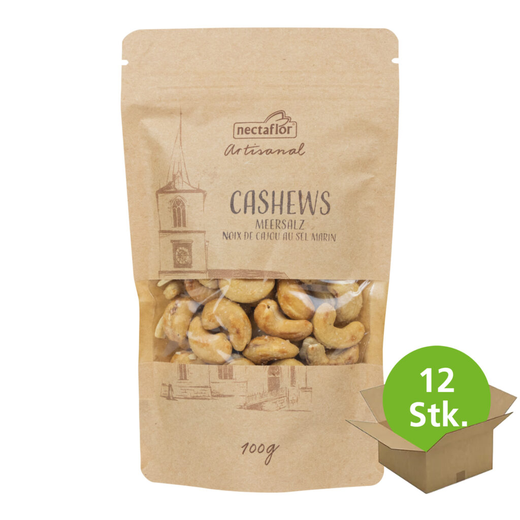 Cashews geröstet und gesalzen sind unsere Nüssli, für alle die gerne etwas simples aber super leckeres mögen. Die Nectaflor artisanal Meersalz Cashews sind schonend geröstete Nüsse, veredelt mit feinstem Meersalz. Der perfekte Snack in Kombination mit einem Getränk, das im Vordergrund stehen möchte. Unser Favorit in Kombination mit Wein.