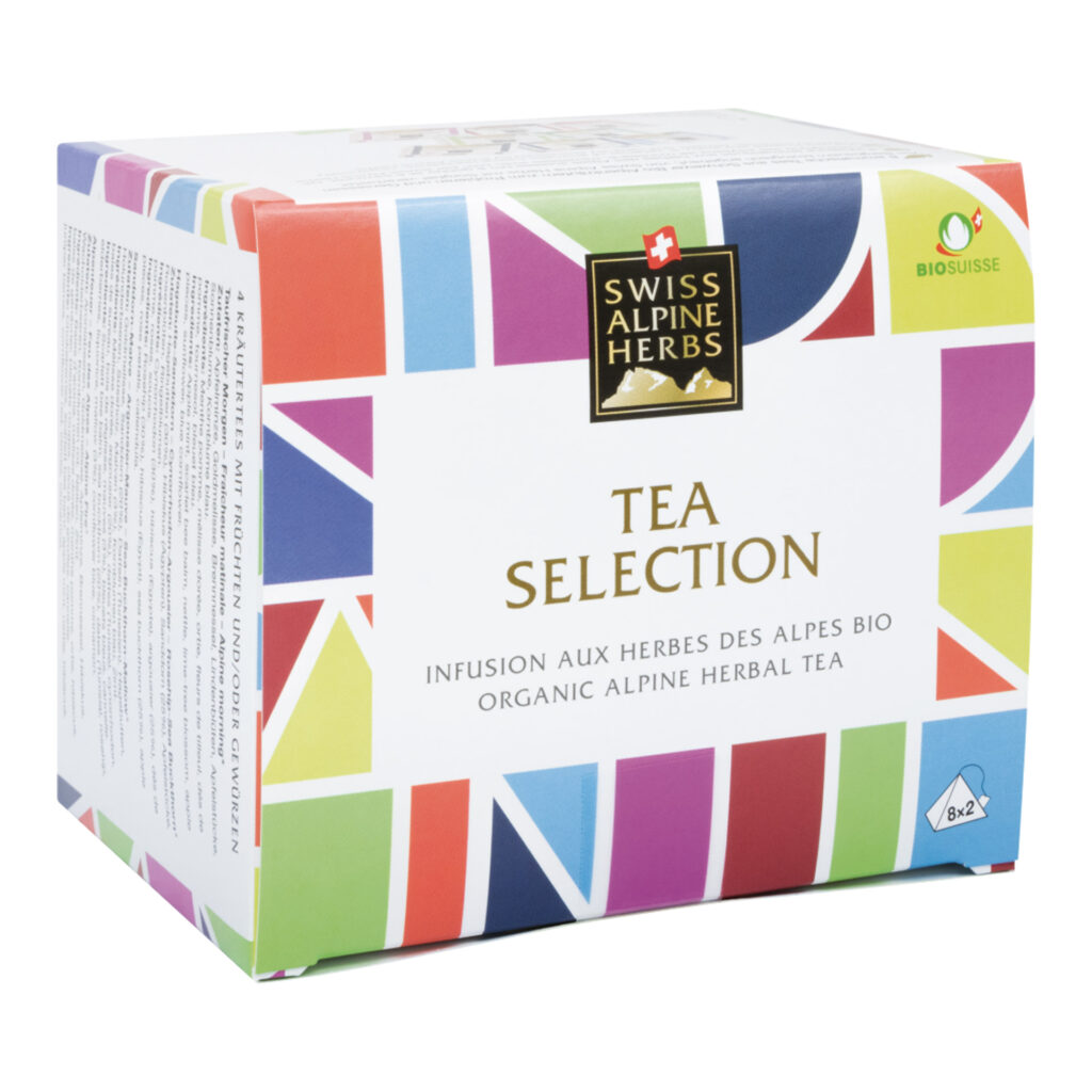 8 Alpenkräutertees von Swiss Alpine Herbs zum Entdecken! Diese Probierbox ist für Teekenner, neugierige Einsteiger und abwechslungsliebende Geniesser ideal. Lernen Sie mit der Bio Alpenkräuter Tee Selection eine Auswahl an acht verschiedenen Alpenkräutertees kennen. Diese Probierbox eignet sich für Teekenner, neugierige Einsteiger und Geniesser, die Abwechslung schätzen. Sie macht sich auch ausgezeichnet als kleines Mitbringsel oder als Dankeschön. Alle darin enthaltenen Zutaten stammen aus biologischer Landwirtschaft. Sie finden von jeder Sorte zwei einzeln verpackte Pyramidenbeutel.