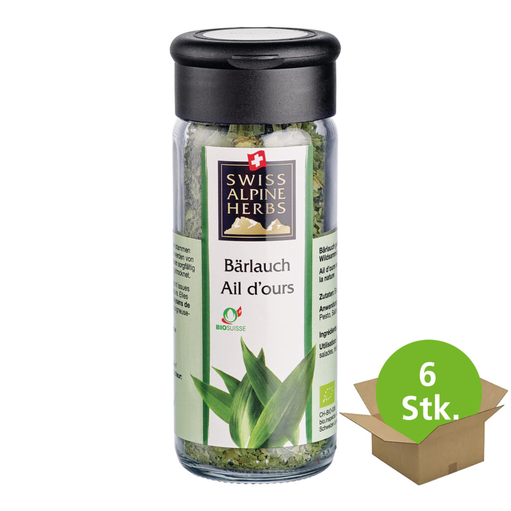 Bärlauch aus zertifizierter Wildsammlung. Ausgeprägter, aromatischer Knoblauchgeschmack. Im Frühling, wenn die ersten warmen Sonnenstrahlen die Erde erwärmen spriesst alle Jahre wieder der feine Bärlauch und betört mit seinem knoblauchartigen Duft unsere Sinne. Liebhaber von Bärlauch machen sich nun auf den Weg in den Wald und sammeln eifrig die aromatischen, zarten Blätter des wildwachsenden Gewürzkrauts. Leider ist die Saison des frischen Bärlauchs nur von kurzer Dauer und manch einer trauert den frischen Blättern nach…In unserem Swiss Alpine Herbs Bio Bärlauch haben wir den Duft des frischen Bärlauchs ganzjährig eingefangen. Unser Bärlauch stammt aus zertifizierter Wildsammlung.