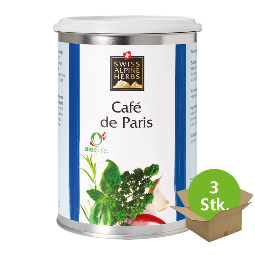 In der Vorratsdose: unsere fein aufeinander abgestimmte Gewürzmischung mit dem für Café de Paris typischen, aromatischen Geschmack. Swiss Alpine Herbs Bio Café de Paris ist eine köstliche Kräutersalz-Gewürzmischung für die Herstellung von Sauen oder Kräuterbutter «Café de Paris». Aromatische, 100 % natürliche Kräuterharmonie aus für «Café de Paris» typischen Kräutern wie Basilikum, Estragon, Petersilie Majoran aber auch Zwiebeln, Gewürzen und Salz.