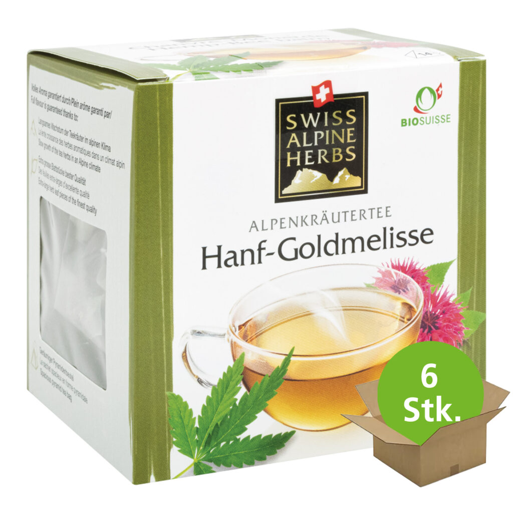 Beruhigender Kräutertee aus wohltuendem Hanf mit einem Hauch von Goldmelisse. Swiss Alpine Herbs Bio Hanf-Goldmelisse Tee ist der perfekt Begleiter für einen ruhigen Abend. Sowohl Hanf wie auch Goldmelisse wirken beruhigend und entspannend. Alle Zutaten stammen zudem aus biologischer Schweizer Landwirtschaft. Somit ist der Swiss Alpine Herbs Hanf-Goldmelisse Tee der ideale Ausklang nach einem hektischen Tag. Beruhigender Kräutertee aus wohltuendem Hanf mit einem Hauch von Goldmelisse. Bio Hanf-Goldmelisse Tee ist der perfekt Begleiter für einen ruhigen Abend.