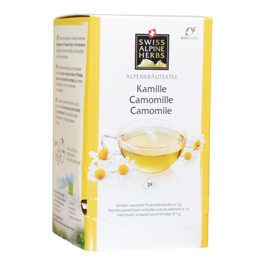 Mild-aromatisch im Geschmack schmeichelt unser Bio Kamillentee von Swiss Alpine Herbs dem Gaumen. Ideal auch bei Erkältungen. Die Kamille ist bereits seit der Antike als Heilpflanze für ihre beruhigende und schmerzlindernde Wirkung bekannt. Kamillentee findet häufig Anwendung bei bei Verdauungsbeschwerden, Magen-Darm-Erkrankungen oder bei Erkältungen. Besonders gut schmeckt der angenehm-milde Swiss Alpine Herbs Bio Tee Kamille gesüsst mit etwas Honig.