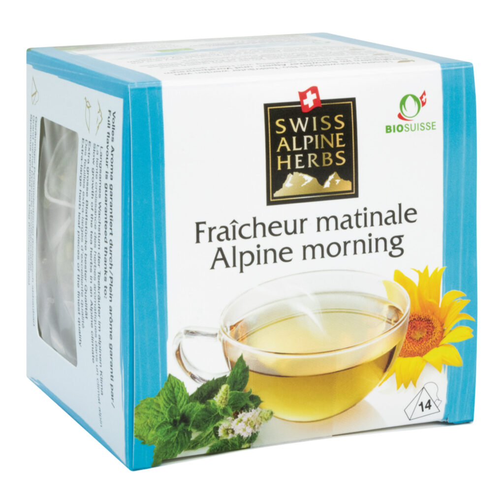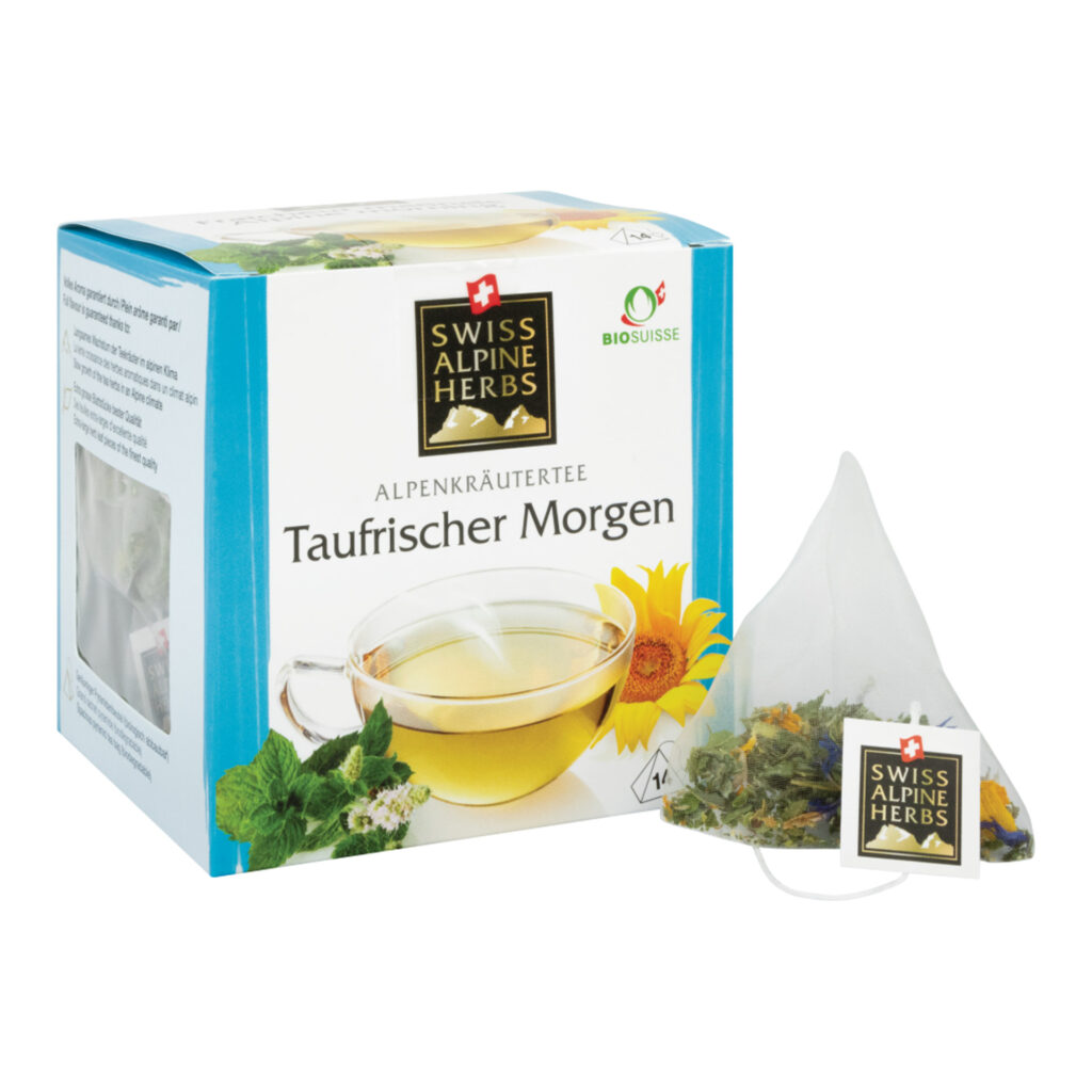 Vitalisierend und mit leichter Lindenblüten Note. Unser Bio Kräutertee Taufrischer Morgen von Swiss Alpine Herbs ist ideal für einen schwungvollen Start in den Tag. Mit diesem Tee heissen Sie den Morgen willkommen. Swiss Alpine Herbs Bio Tee Taufrischer Morgen ist eine anregende Symphonie aus duftenden Bio Teekräutern wie Apfelminze und Goldmelisse, Bio Blüten und Apfelstücken. Mit seiner belebenden Wirkung ist er gerade richtig für den Einstieg in einen neuen Tag.