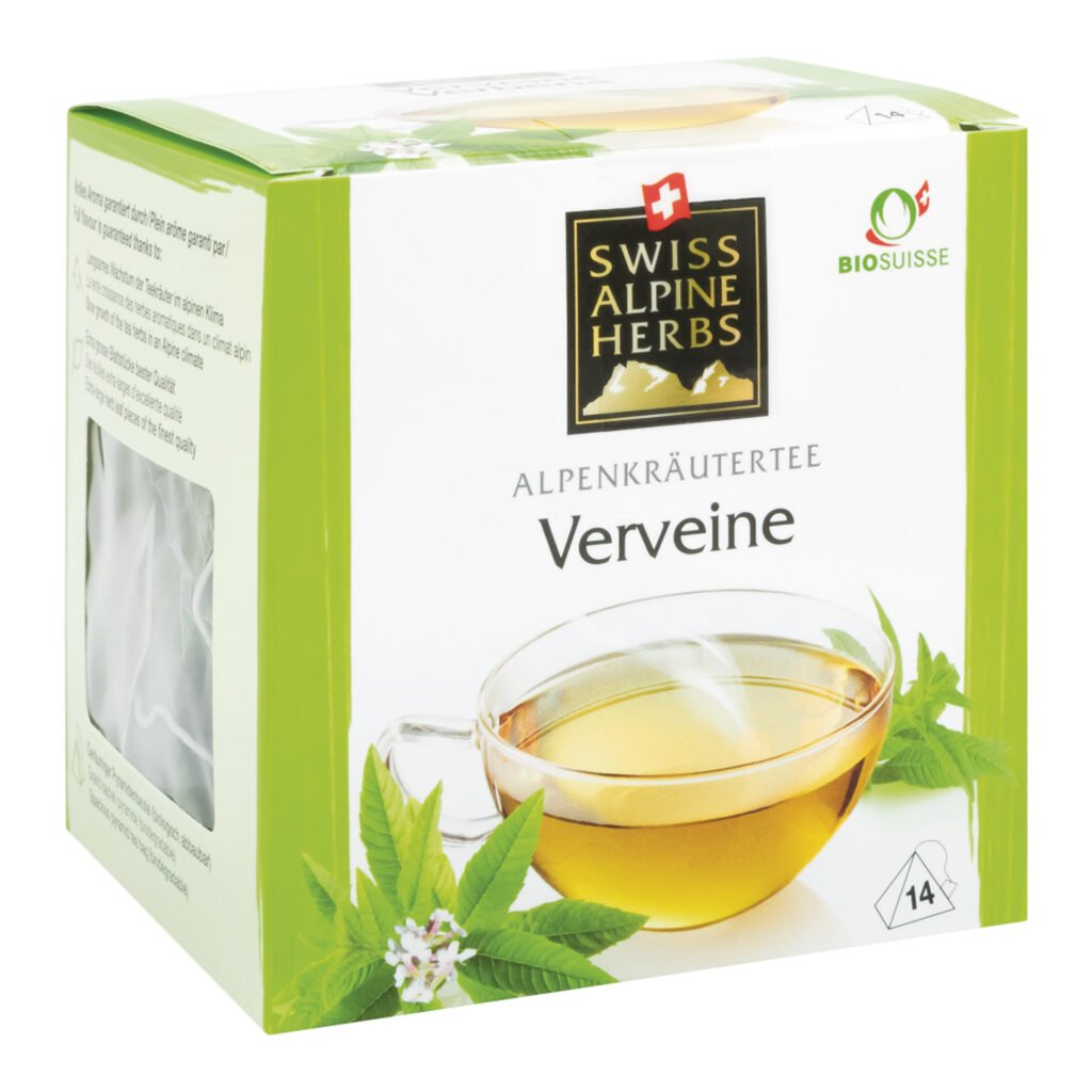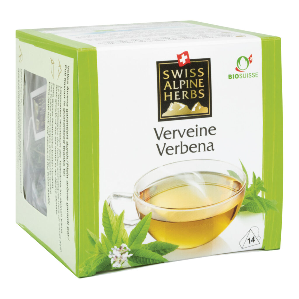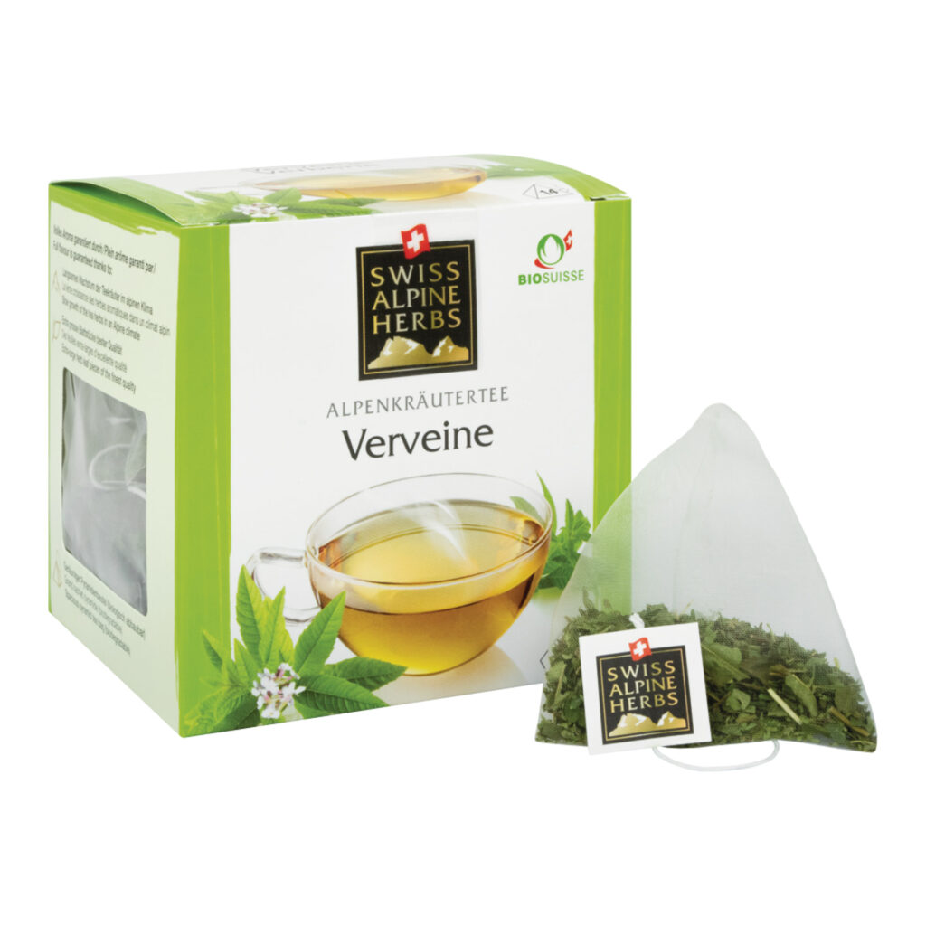 Leicht zitroniger Kräutertee mit gleichzeitig anregender und beruhigender Wirkung. Bio Verveine Tee von Swiss Alpine Herbs ist auch abgekühlt ein Genuss. Verveine (= Zitronenstrauch, aloysia citrodora, auch Zitronenduftstrauch, Zitronenverbene oder wohlriechendes Eisenkraut genannt) ist eine Pflanzenart aus der Familie der Eisenkrautgewächse (Verbenaceae). Sie stammt ursprünglich aus Südamerika und wurde Ende des 18. Jahrhundert nach Europa eingeführt. Heute ist Verveine bei Feinschmeckern und Kräuterliebhabern ein Begriff. Swiss Alpine Herbs Bio Tee Verveine verwöhnt mit einer leichten Zitronen Note und seiner zur gleichen Zeit anregenden wie aber auch beruhigenden Wirkung. Tipp: dieser Tee ist sowohl heiss wie auch abgekühlt getrunken, ein Genuss.