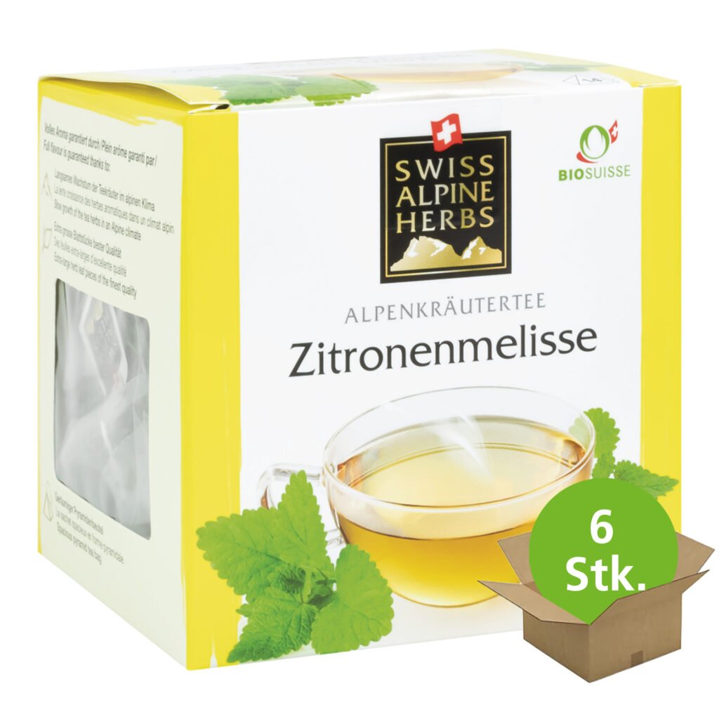 Angenehm duftend und wohltuend. Bio Zitronenmelissen Tee von Swiss Alpine Herbs überzeugt mit zitronig-frischem Aroma. Zitronenmelisse beruhigt angespannte Nerven. Schon im antiken Griechenland war die Zitronenmelisse als Heilpflanze bekannt und hoch angesehen. Ihre ätherischen Öle wirken beruhigend und mindern Verdauungs-Beschwerden und Schlafstörungen. Die eher unscheinbare Gewürz- und Arzneipflanze mit botanischem Namen Melissa officinalis betört die Sinne mit einem wunderbaren Zitronenduft. Frische Zitronenmelisseblätter werden dank des ausgeprägten Aromas deshalb auch gerne in der Küche verwendet, zum kalt aufgiessen als Sirup oder für Tee. Swiss Alpine Herbs Bio Tee Zitronenmelisse schmeckt entweder klassisch heiss oder kalt als Sommer-Erfrischung mit einer Zitronenscheibe. Angenehm wohltuend und zitronig-frisch. Tipp: die Zugabe von frischen Pfefferminzblättern am Schluss verleiht dem Tee ein besonders frisches Aroma.