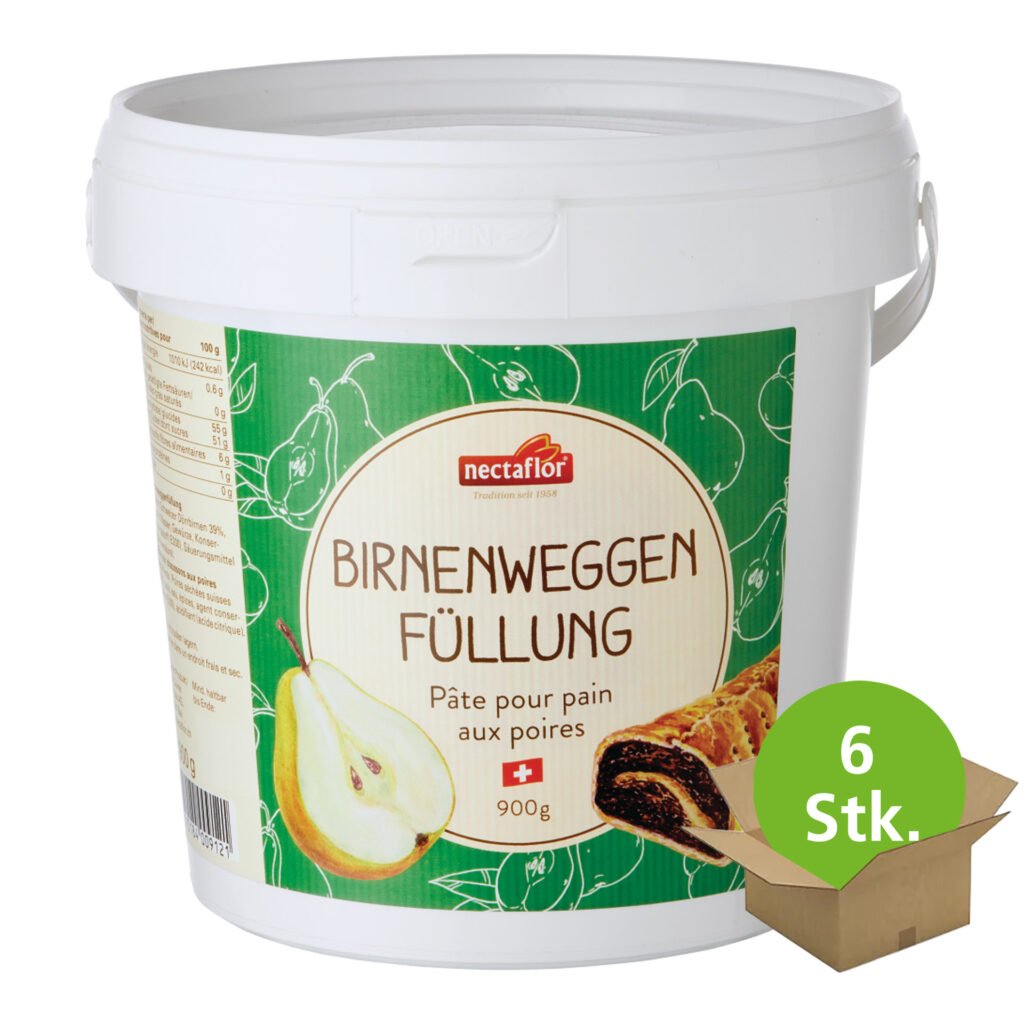 Wunderbar typisch würzig-aromatische, fixfertige Birnenweggenfüllung aus Schweizer Birnen. Mit der nectaflor Birnenweggenfüllung fixfertig gelingt Ihnen die selbstgebackene Birnenwegge garantiert. Die Backmasse kann unkompliziert und direkt aus der praktischen, wiederverschliessbaren Dose angewendet werden. Auch geeignet für verschiedenste winterliche Gebäcke. Die hochwertige Birnenweggenfüllung ist sehr gut streichbar und begeistert mit ihrem einmaligen Aroma. Mit grosser Sorgfalt in der Schweiz aus 100 % Schweizer Birnen hergestellt. Ä Guete!