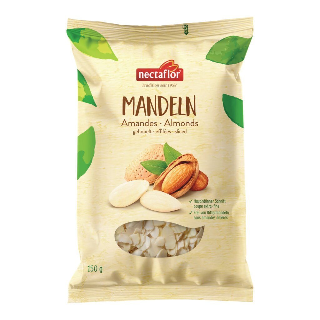 Mandeln gehobelt und hauchdünn geschnitten. Beliebte und vielseitige Zutat in der süssen und pikanten Küche. Die Mandeln für nectaflor Mandeln gehobelt stammen aus Kalifornien und sind – im Gegensatz zu den meisten Mandeln aus Europa – 100% frei von Bittermandeln. Sie bestechen durch ein mildes, aromatisches und typisches Mandelaroma. Aus Qualitätsgründen werden die Mandeln erst kurz vor dem Transport in die Schweiz geknackt, geschält und zu hauchdünnen, gleichmässigen Mandelblättchen geschnitten. Roh oder geröstet ideal zur Verfeinerung oder Dekoration von Speisen aller Art.