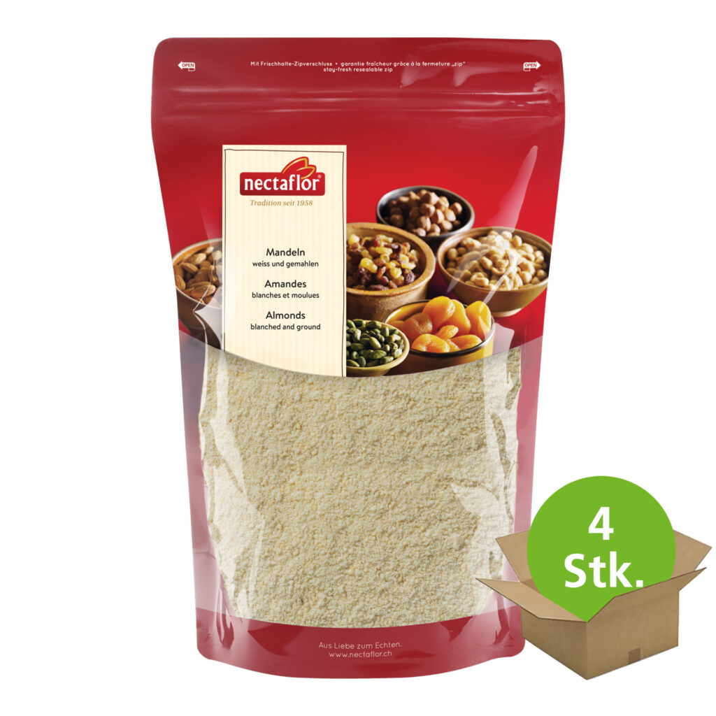 Klassische, vielseitige Backzutat. Mandeln weiss gemahlen werden aus geschälten Mandeln hergestellt. nectaflor Mandeln weiss gemahlen sind eine hochwertige Backzutat aus Kalifornien und zu 100 % frei von Bittermandel-Anteilen. Sie zeichnen sich aus durch ihren milden, typisch-aromatischen Mandelgeschmack. Aus Qualitätsgründen werden die Mandeln erst unmittelbar vor dem Transport in die Schweiz geknackt und geschält. Das Vermahlen erfolgt frisch vor dem Abpacken in Biel. Klassische, mild-süsse Backzutat.