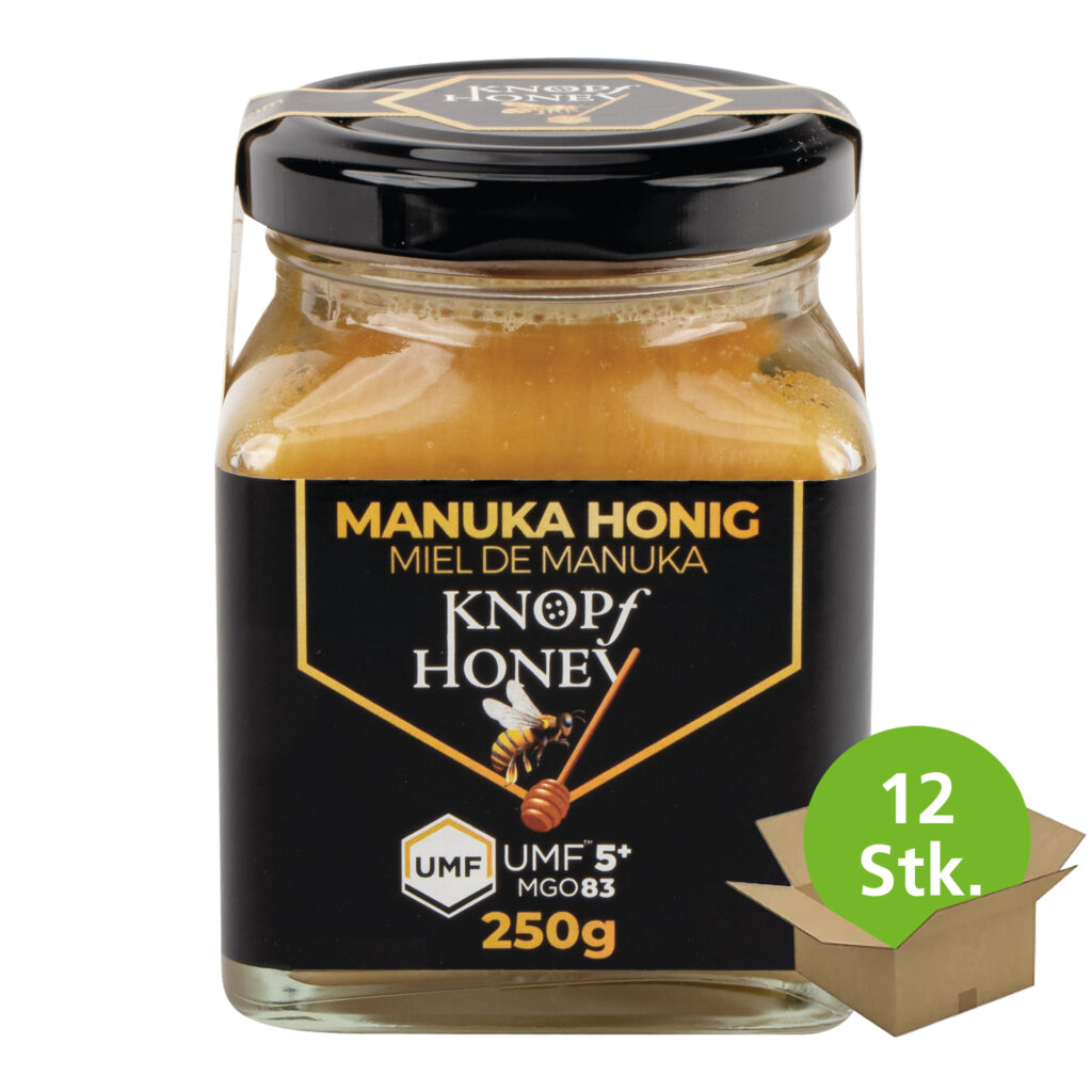 Manukahonig ist ein besonders wertvolles Naturprodukt. Das wussten bereits die Maori, nannten sie ihn doch den «heiligen Schatz». Unser Manukahonig stammt aus der Imkerei Knopf in Neuseeland, ist UMF-zertifiziert, 100 % echt und unverfälscht. Manukahonig wird von Bienen aus dem Blütennektar der Südseemyrte (Leptospermum scoparium) gewonnen und enthält – im Vergleich zum anderen Honig – eine besonders hohe Konzentration Methylglyoxal (MGO). Diesem Inhaltsstoff werden die besonderen Eigenschaften im Manukahonig zugeschrieben. Aromatisch-würzig, leicht herb im Geschmack. Abgefüllt im Glas für optimalen Produktschutz.