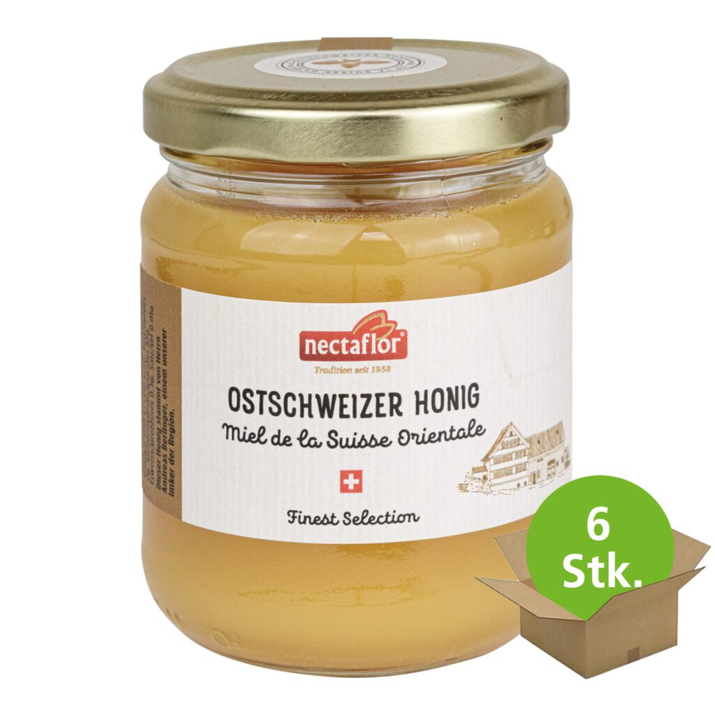 Ausgewogen und mild im Geschmack widerspiegelt dieser helle Ostschweizer Honig die vielfältige Misch-Obstkultur der Region. Die Ostschweiz ist bekannt für ihre grosse Vielfalt an Obst- und Misch-Obstkulturen. Diese dienen den Bienen als hervorragende Nahrungsquelle. Tausende von blühenden Nieder- und Hochstamm-Obstbäumen liefern ab April bis Juni den für diesen hellen Schweizer Qualitäts-Honig benötigten, wertvollen Nektar. nectaflor Ostschweizer Honig ist eine regionale Spezialität mit mildem Geschmack.