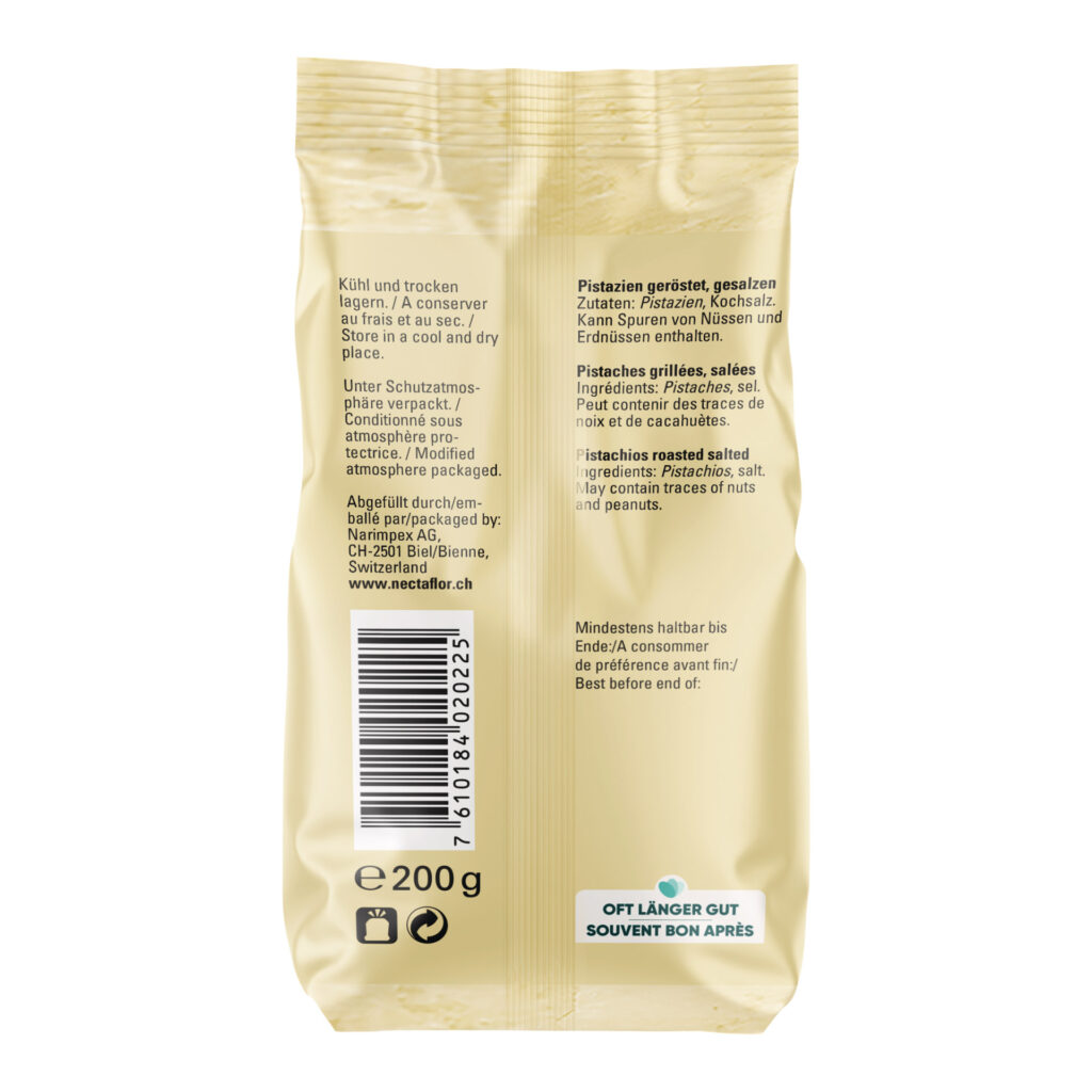 Die gerösteten, leicht gesalzenen Pistazien sind köstlich. Kein Wunder, ist dieser Snack immer so schnell weggeknabbert. Unsere nectaflor Pistazien stammen aus den USA. Sobald dort im Herbst die Pistazien ihre Schale leicht öffnen, werden sie sorgfältig von den Bäumen geschüttelt. Innert Stunden nach der Ernte werden die Früchte mit Wasser gereinigt, von der fleischigen Aussenhaut befreit, getrocknet und schliesslich geröstet und gesalzen. Alles geschieht unter laufender Überwachung der Qualität. nectaflor Pistazien schmecken nussig-aromatisch und leicht salzig. Sie sind hellgrün in der Farbe und müssen vor dem Naschen erst noch geschält werden. Pistazien sind reich an Ballaststoffen und wertvollen mehrfach ungesättigten Fettsäuren. Geröstet und gesalzen ist diese Nuss bzw. Steinfrucht ein beliebter Knabber- und Apéro-Snack.