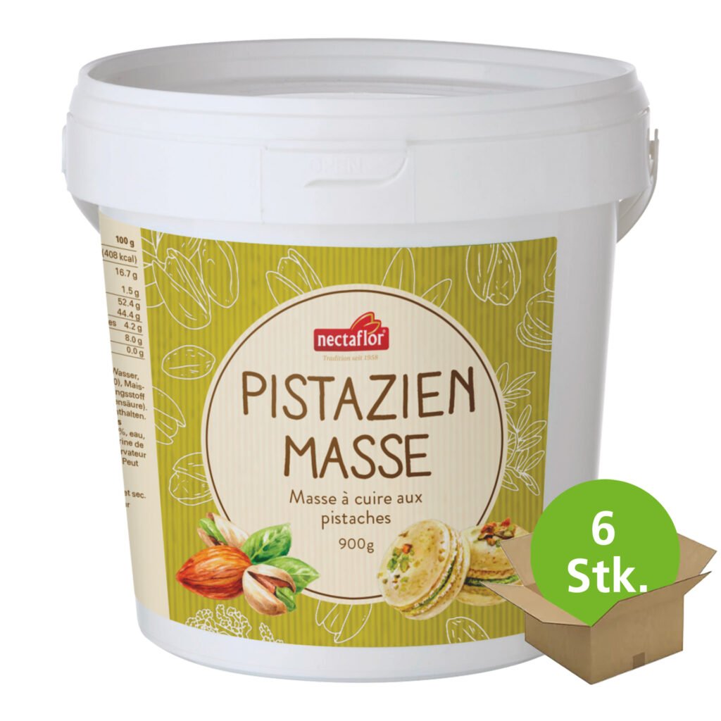 Feinste Pistazienmasse mit Mandeln und Pistazien. Ideal für die Kreation von Gebäck und Desserts aller Art wie zB. Macarons. Verwendung: als Basis für Macarons, Cupcakes oder Muffins verwenden. Zur Bereicherung von Früchtekuchen, dünn auf den Teig auftragen bevor die Früchte eingefüllt werden oder als Füllung für Gipfeli, Guetzli, Hefegebäck oder Biberli.