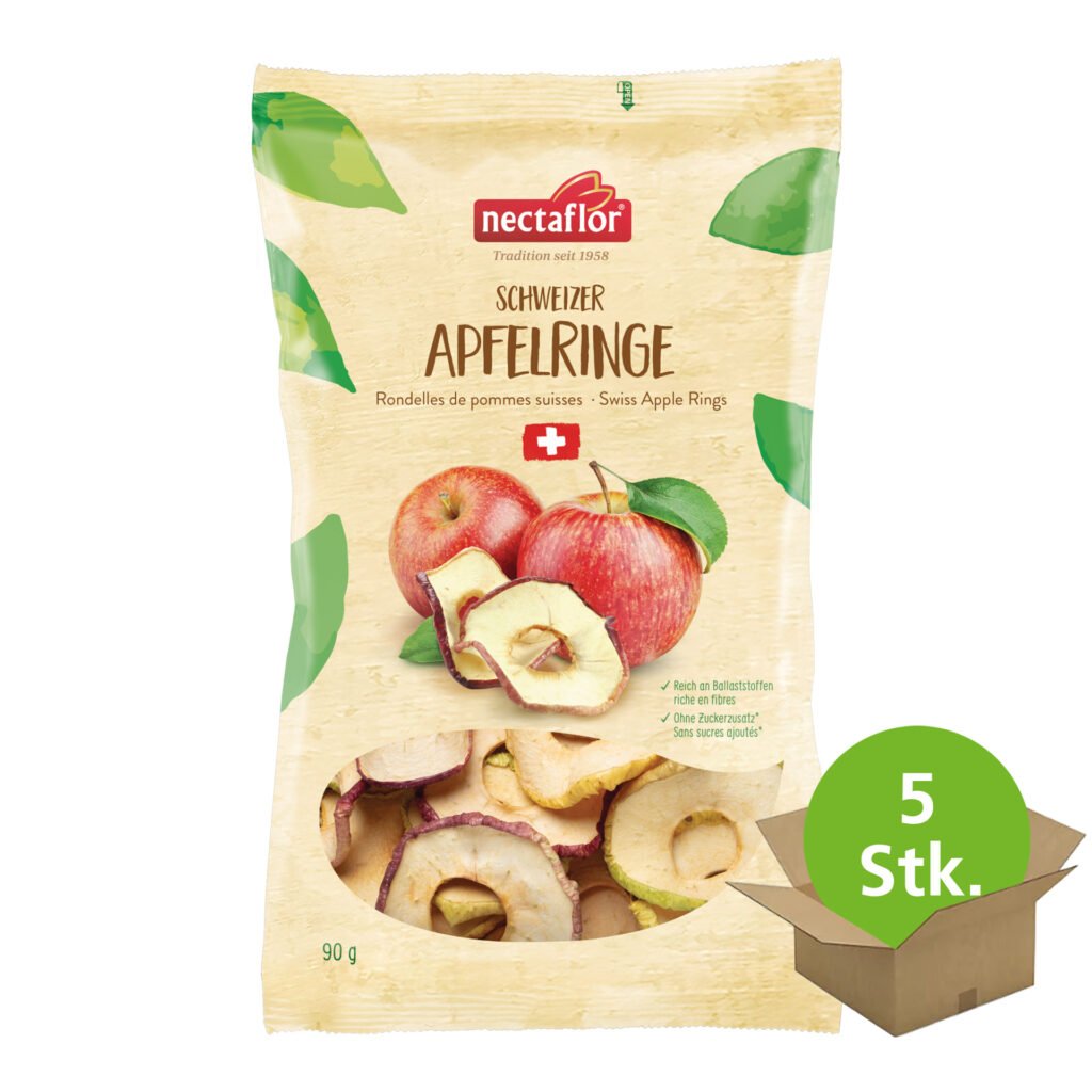 Ein energie- und ballaststoffreicher Snack aus Schweizer Äpfeln. 100% natürlich. Beliebt bei Gross und Klein. So fein wie ein frischer Apfel! Unsere Apfelringe aus sonnengereiften Schweizer Äpfeln werden im Simmental schonend getrocknet. Sie sind naturbelassen, ohne Schwefel und angenehm weich im Biss. Die Schale lässt die nectaflor Schweizer Apfelringe nicht nur besonders «gluschtig» aussehen, sondern sie enthält auch viele wertvolle Pflanzenstoffe. Ein beliebter, energie- und ballaststoffreicher Snack für Gross und Klein.
