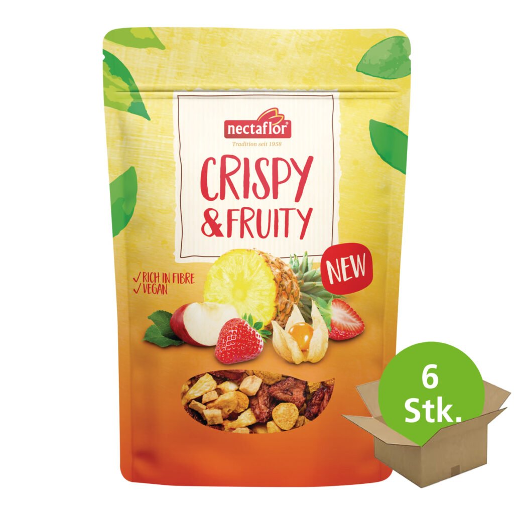 Überraschend knuspriger Trockenfrucht-Snack aus Ananas, Apfel, Physalis und Erdbeeren. 100% natürlich, super aromatisch, mit Knusper-Wow-Effekt. Der revolutionär knusprige nectaflor Snack Mix Crispy & Fruity besteht aus puren Früchten und weiter nichts. Ananas, Äpfel, Physalis und Erdbeeren werden dank einer schonenden Trocknungstechnologie aus Vakuum und Druck knusprig, luftig-leicht und bleiben super aromatisch. Da macht Knabbern von Früchten doppelt Spass.