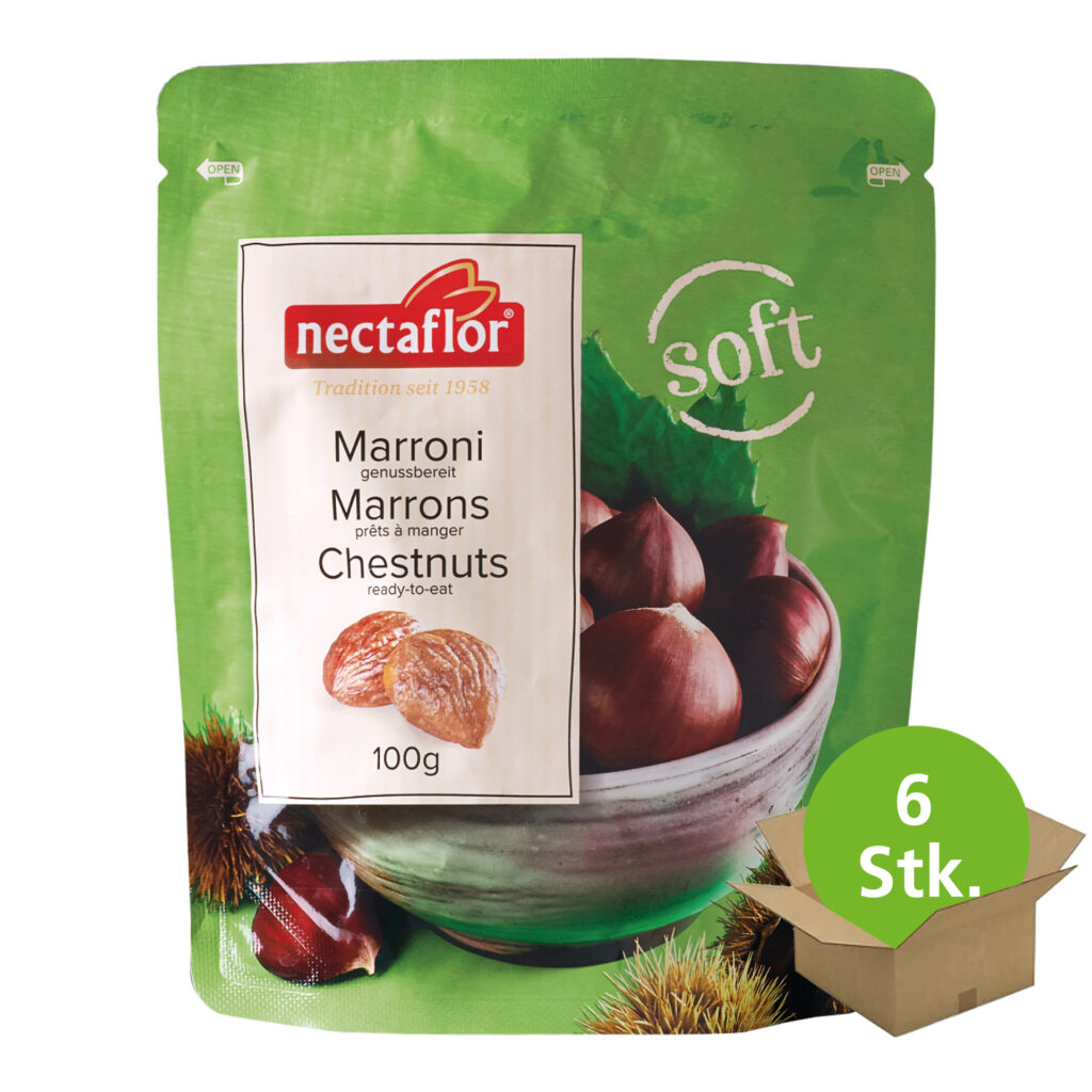 Feinste Soft Marroni, einzeln ausgewählt und extra weich im Biss sind diese Früchte ein fettarmer, ballaststoffreicher Snack. Unsere unter der Mittelmeersonne gereiften Edelkastanien werden einzeln ausgewählt, schonend gedämpft und sorgfältig geschält. Ein spezielles Veredelungsverfahren macht diese Marronis feucht, aromatisch und weich im Biss. Die fettarme, ballaststoffreiche Trockenfrucht ist ideal als natürlicher Snack oder als vielseitige Zutat in der Küche.