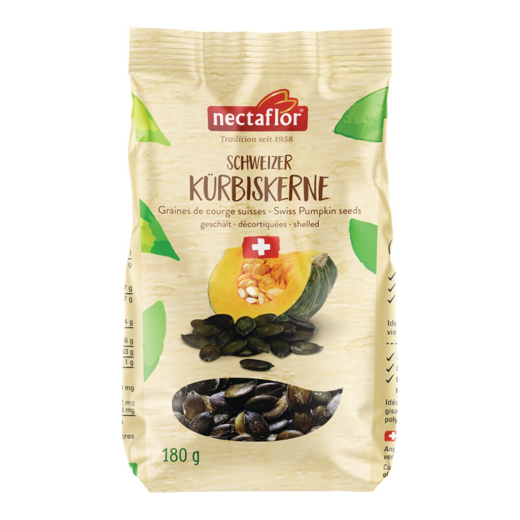 Die nussig-milden Sonnenblumenkerne sind richtige Power-Samen: reich an Proteinen, Mineral- und Ballaststoffen. Sonnenblumenkerne sind Power und Genuss pur. Bekannt geworden als Ölsaat zur Herstellung von hochwertigem Speiseöl punkten Sonnenblumenkerne heute vor allem mit ihren kulinarischen und gesundheitlichen Vorzügen als Snack oder Koch- und Backzutat. Reich an Proteinen, Mineral- und Ballaststoffen machen diese Samen – geröstet oder roh – Appetit auf mehr. nectaflor Sonnenblumenkerne ohne Schale zeichnen sich durch die grosse Sortierung, die helle Farbe und den nussig-milden Geschmack aus.