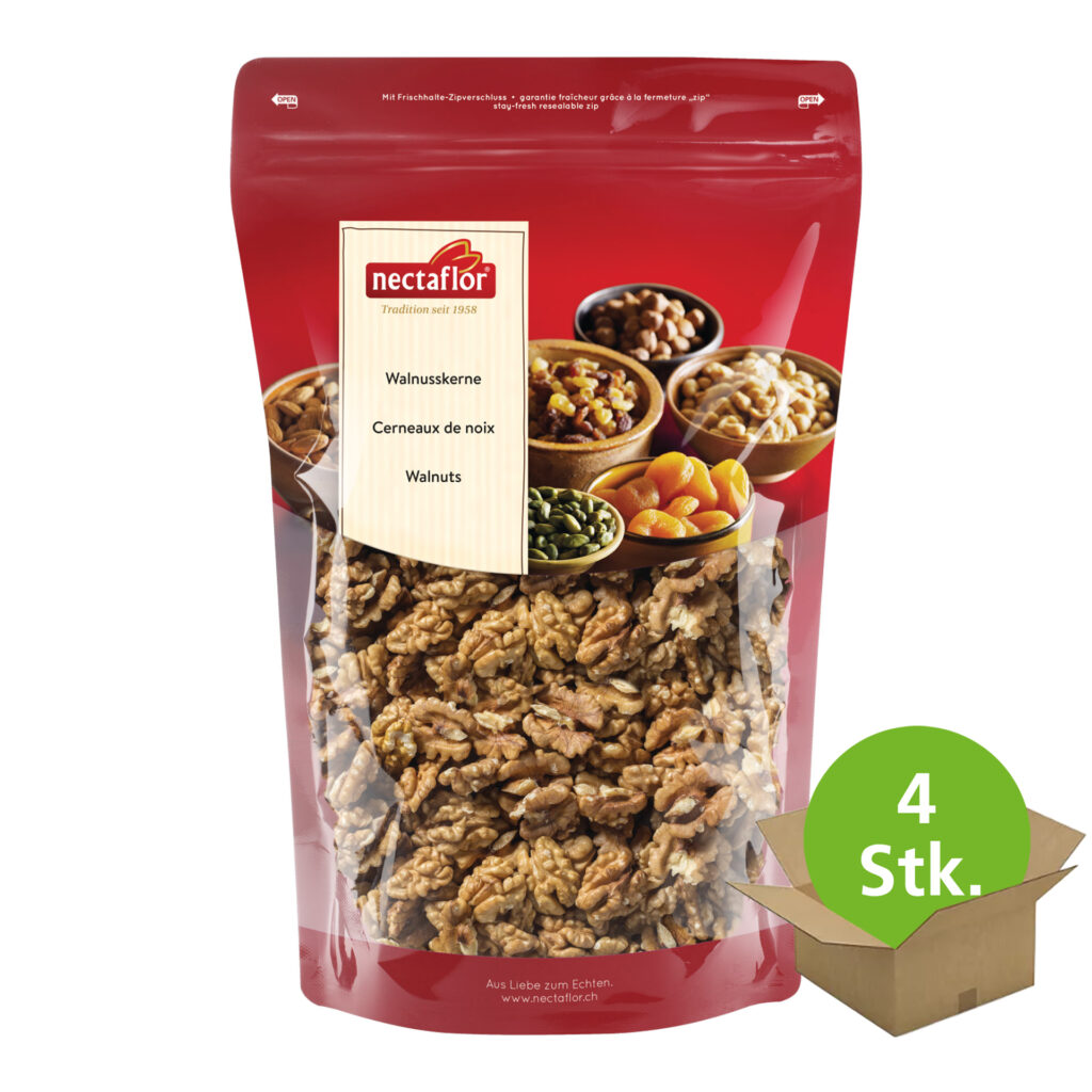 Geniessen Sie Walnusskerne in Spitzenqualität: vorsichtig von Hand aufgeklopfte, schön grosse Hälften mit ausgeprägtem Nussgeschmack. Geniessen Sie Spitzenqualität in grossen, schönen Hälften. nectaflor Walnüsse werden vorsichtig von Hand aufgeklopft und streng selektioniert um möglichst schöne, unverletzte Kernhälften zu erhalten. Die wertvollen Baumnüsse sind gesunde Kraftpakete aus der Natur und verwöhnen mit einem ausgeprägten, typisch-nussigen Aroma. Die Nuss ist reich an Omega-3-Fettsäuren und Mineralstoffen.